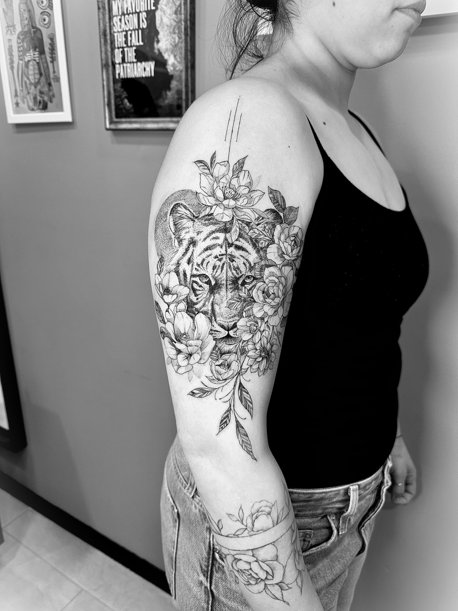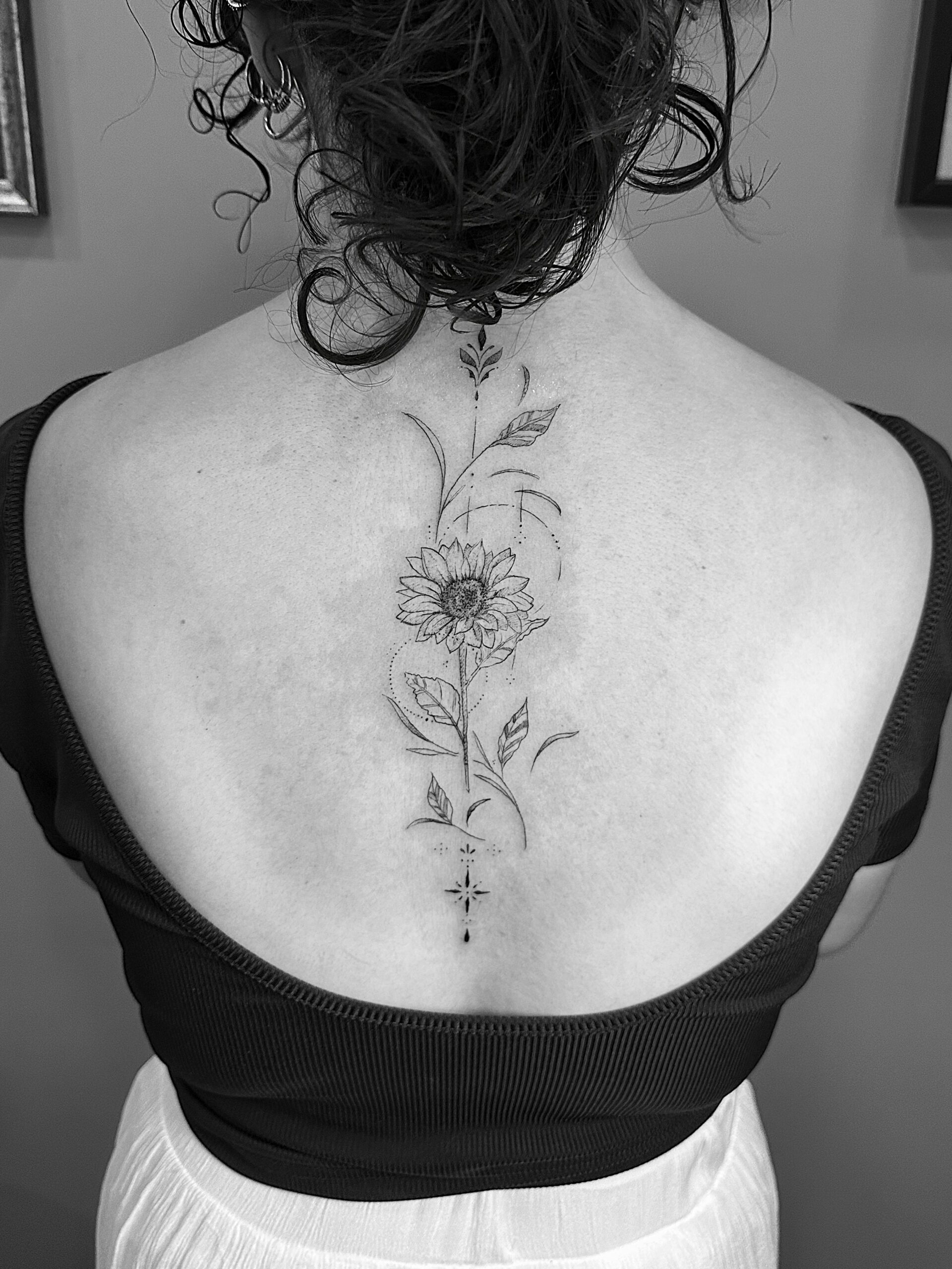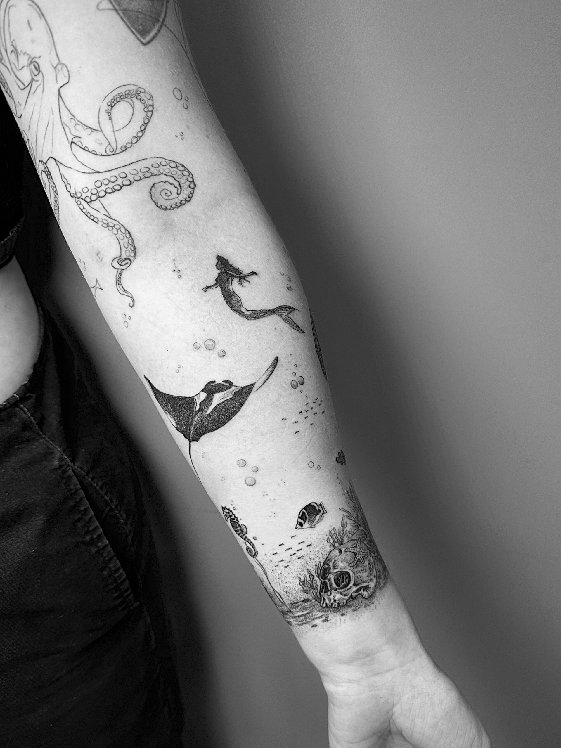 Tatuajes complejos y de combinación de varios elementos. Líneas finas a lo grande.